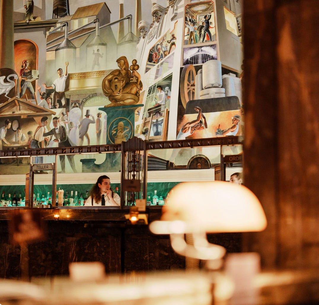 If you hope to soak up more than just the high ceilings, vinyl music, and intricate marble, order the Bull Market from the menu - it serves a generous amount of bourbon for four and may be ideal for a fun-loving double date. Whoever thought to resurrect an historical establishment to house our merriment may possess the same genius as the one who first paired espresso with vodka.