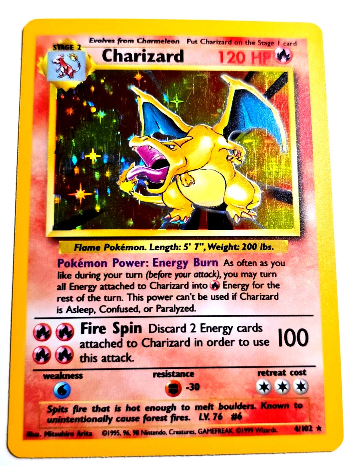 An Original 1999 Pokémon Holographic Charizard Card